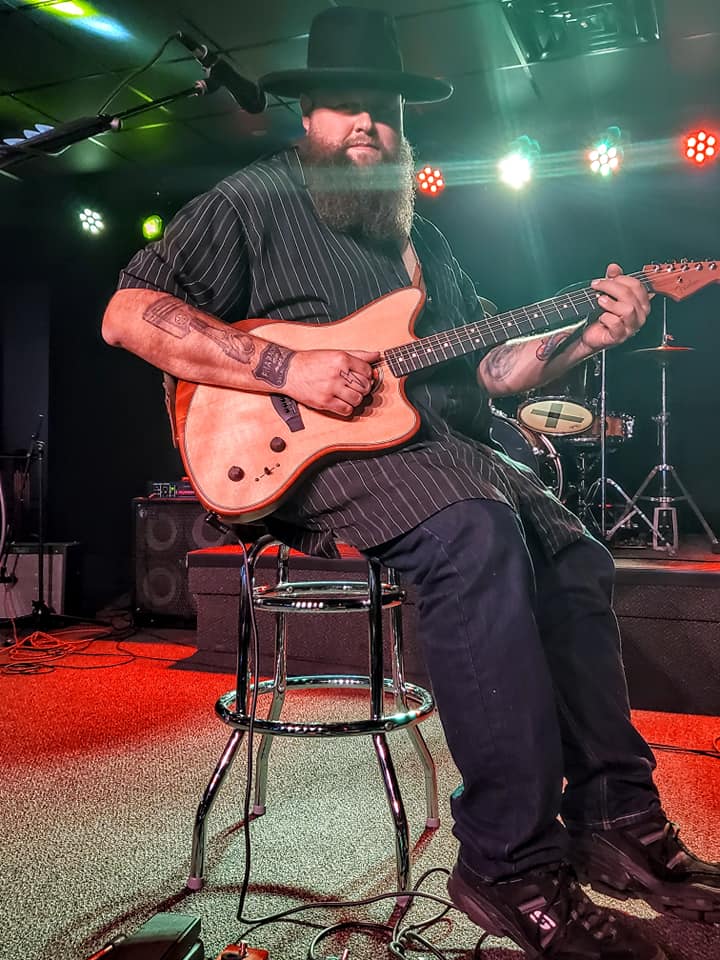 On this night, in the corner by the entrance, behind a pair of pool tables, Jonny Friday—a stalwart on the Manchester music scene and the host of the open mic nights at Angel City Music Hall—sets up for tonight’s acoustic open mic.