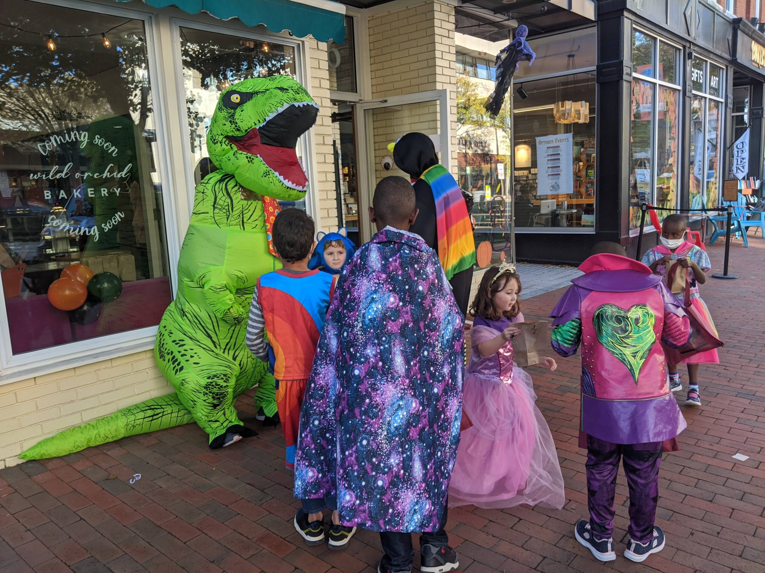 Speaking of dinosaurs, there was a friendly dinosaur handing out goodies outside Wild Orchid Bakery, which has taken over where La La’s Hungarian Bakery for years was an anchor on Elm Street. Photo/Carol Robidoux
