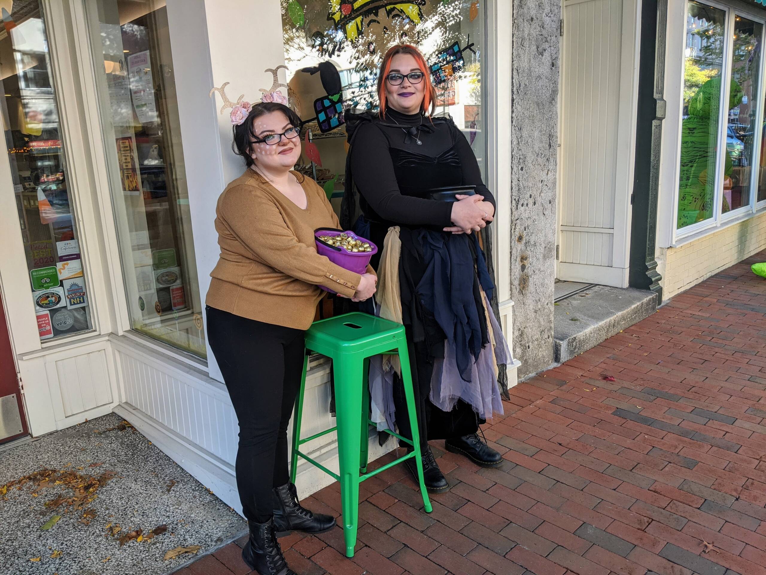 Briana Caprarello, left, as a candy-loving deer, and Elizabeth Colby, a generous candy witch, of Granite State Candy Shoppe. Photo/Carol Robidoux