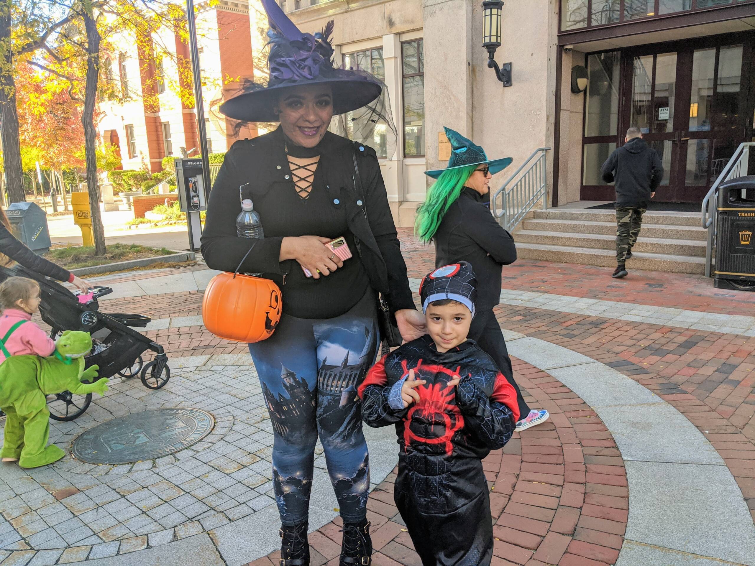 Elijah Barber, 5, rocking his “Miles Morales” version of Spiderman costume and his mama, Gabrielle Baker, who looked smashing in a Harry Potter-themed witchy ensemble. Photo/Carol Robidoux