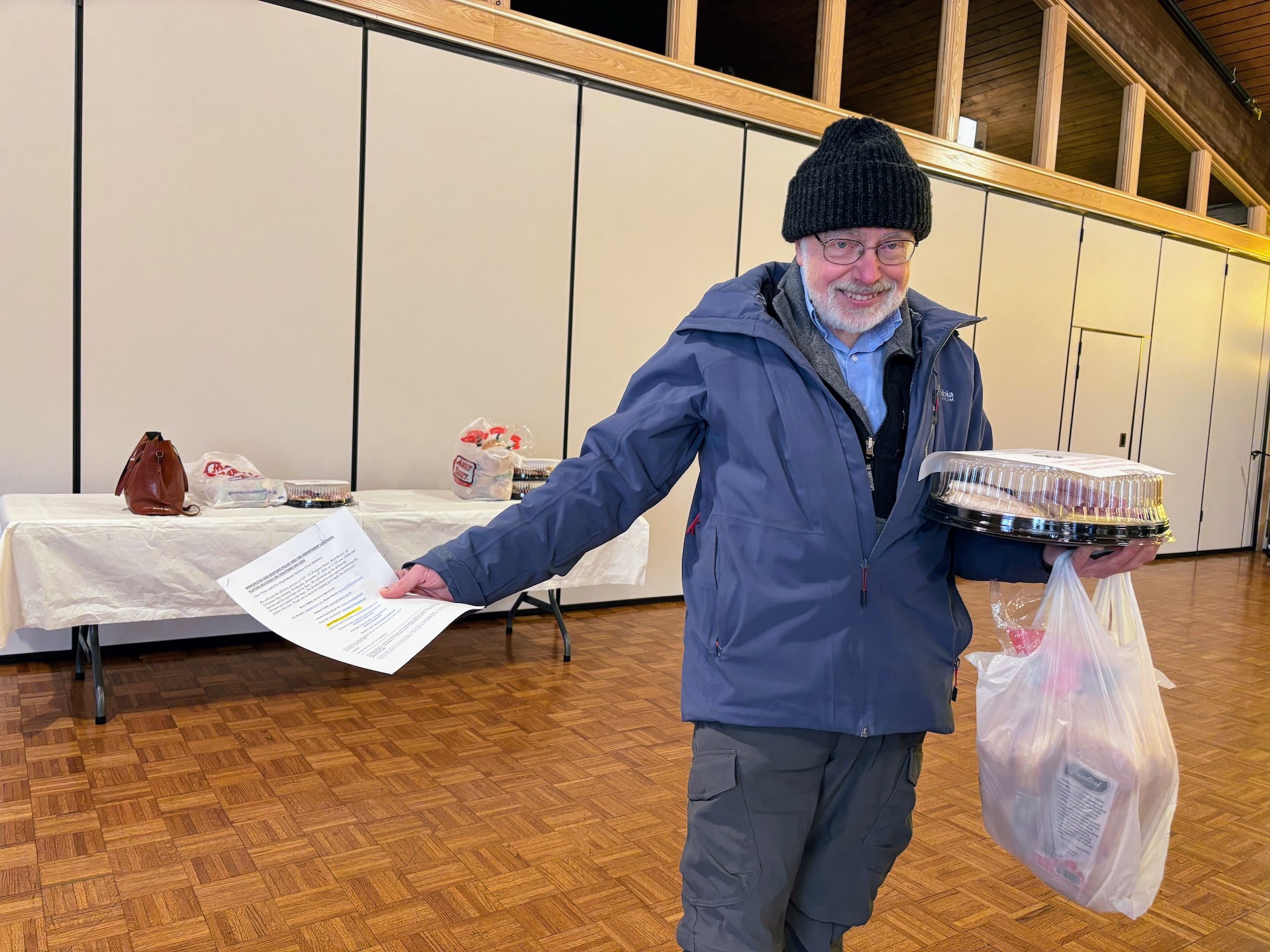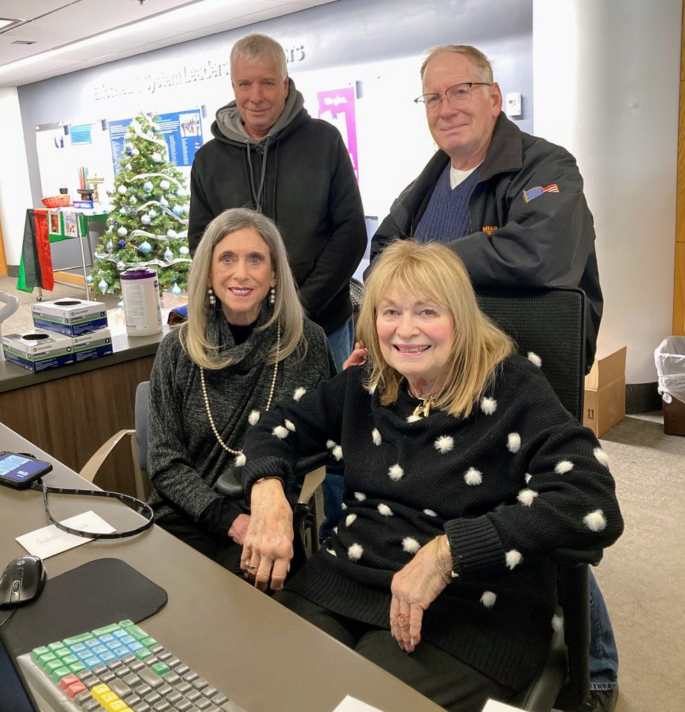 Then, four years ago, along came COVID 19…and the only traditional Mitzvah event in 2020 was the delivery of luncheon platters on Christmas Day to the Manchester and Bedford Police and Fire Stations. This tradition has continued. Following the decrease in COVID, we resumed covering the Eliot Hospital Information Desk on Christmas Eve and Christmas Day.