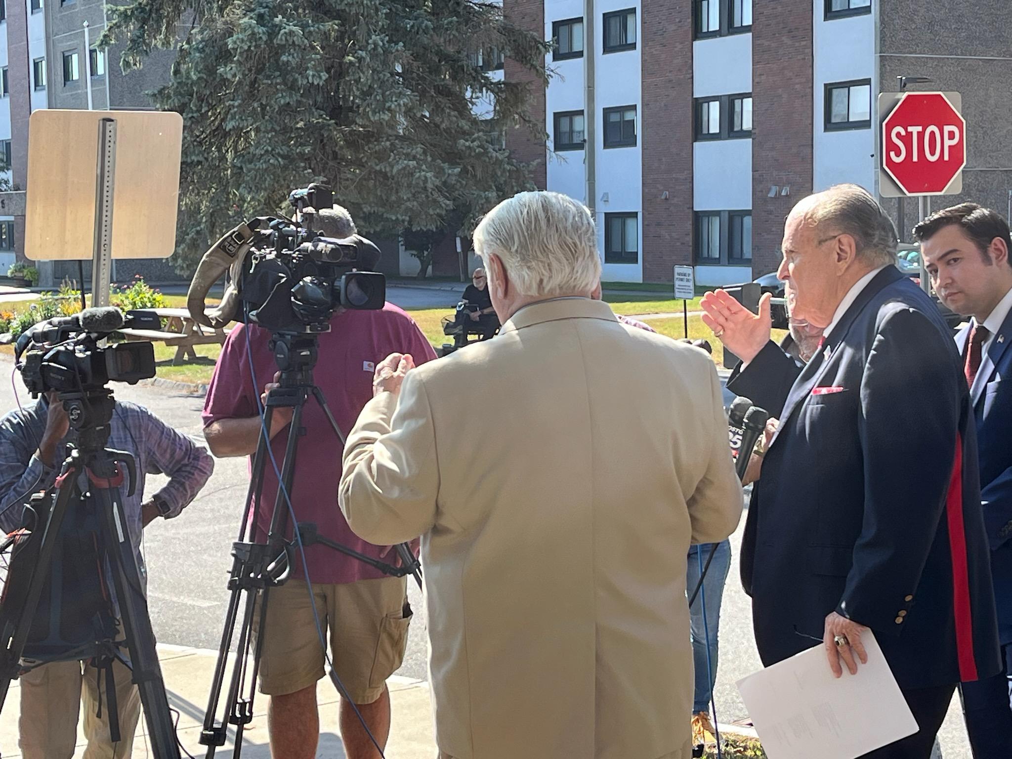 CONCORD, NH – Former New York Mayor Rudy Giuliani appeared outside Merrimack County Superior Court Wednesday to announce he’s suing President Biden for calling him a Russian operative during a 2020 televised debate.