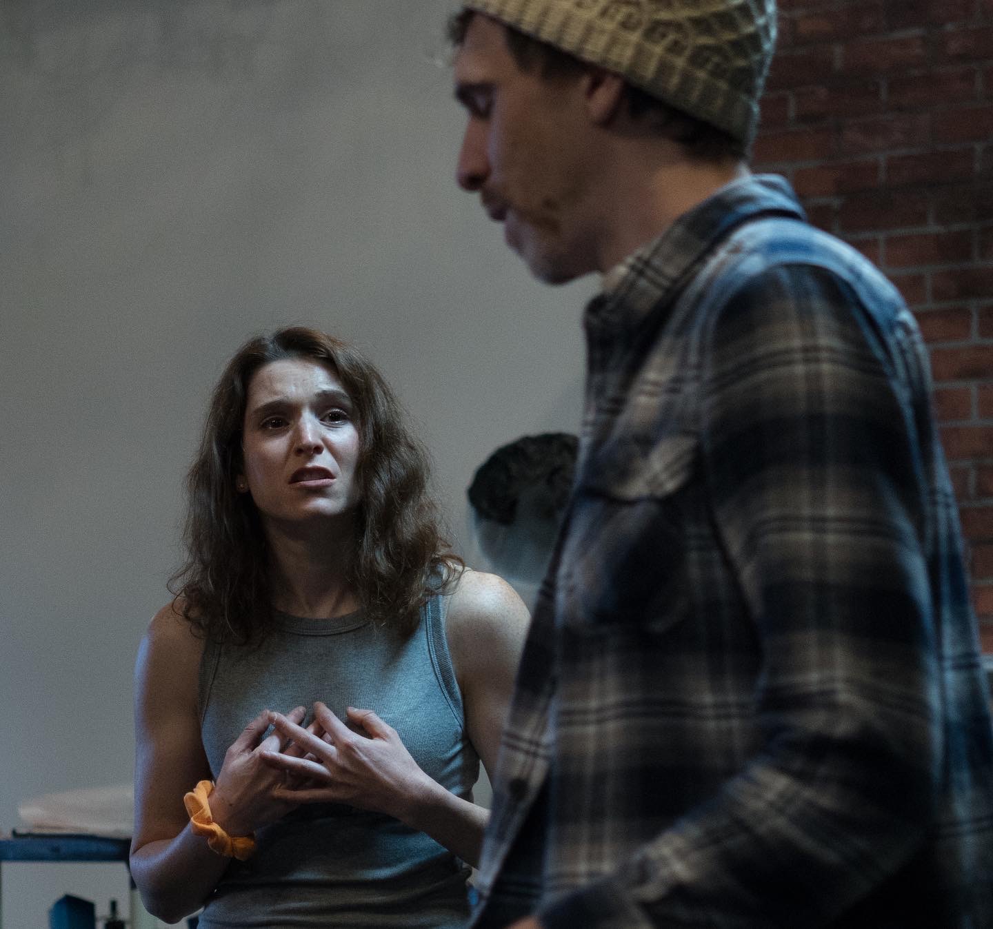Andrew Codispoti and Emily Karel in rehearsal for “A Safe Passage” by Irene Kelleher. Photo/Dan Derby