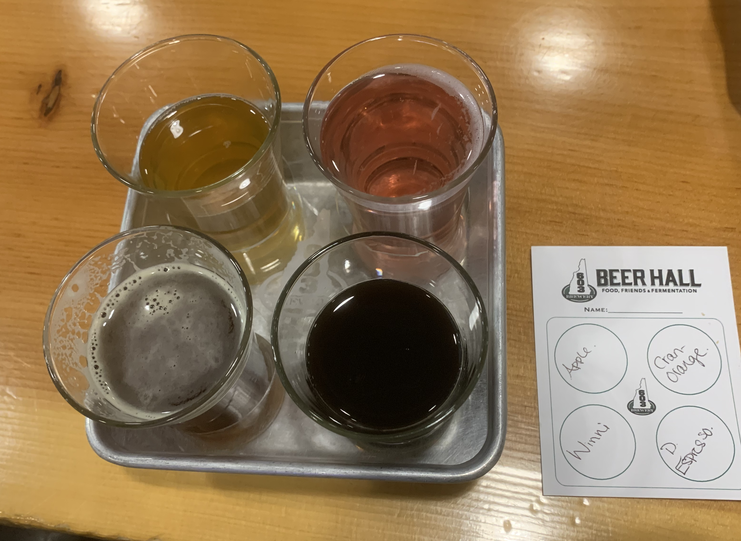 To sample the beers, we ordered two flights of four 5-ounce pours.