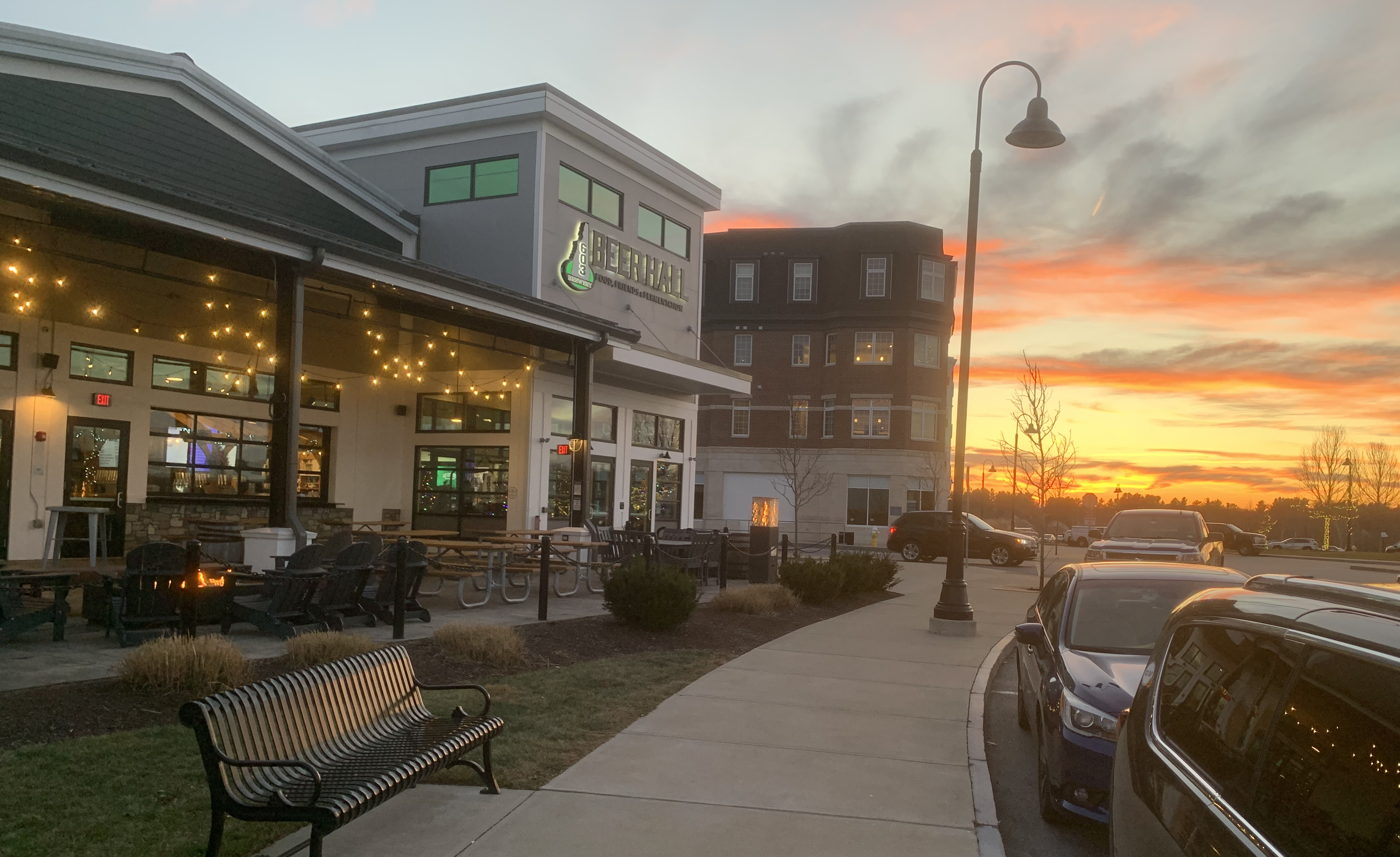 LONDONDERRY, NH – I’ve had 603 Brewing‘s Winni Amber many times and it’s always been a favorite. But I had never visited their brewery until last week – and I’m so glad I finally made it. As you can see from the included images, our arrival coincided with one of the most glorious sunsets in quite a while. I could’ve stood there, mesmerized, for much longer. Prioritization has always been a challenge for me! But my wife was not so easily hypnotized, so we entered the brewery. Teamwork!