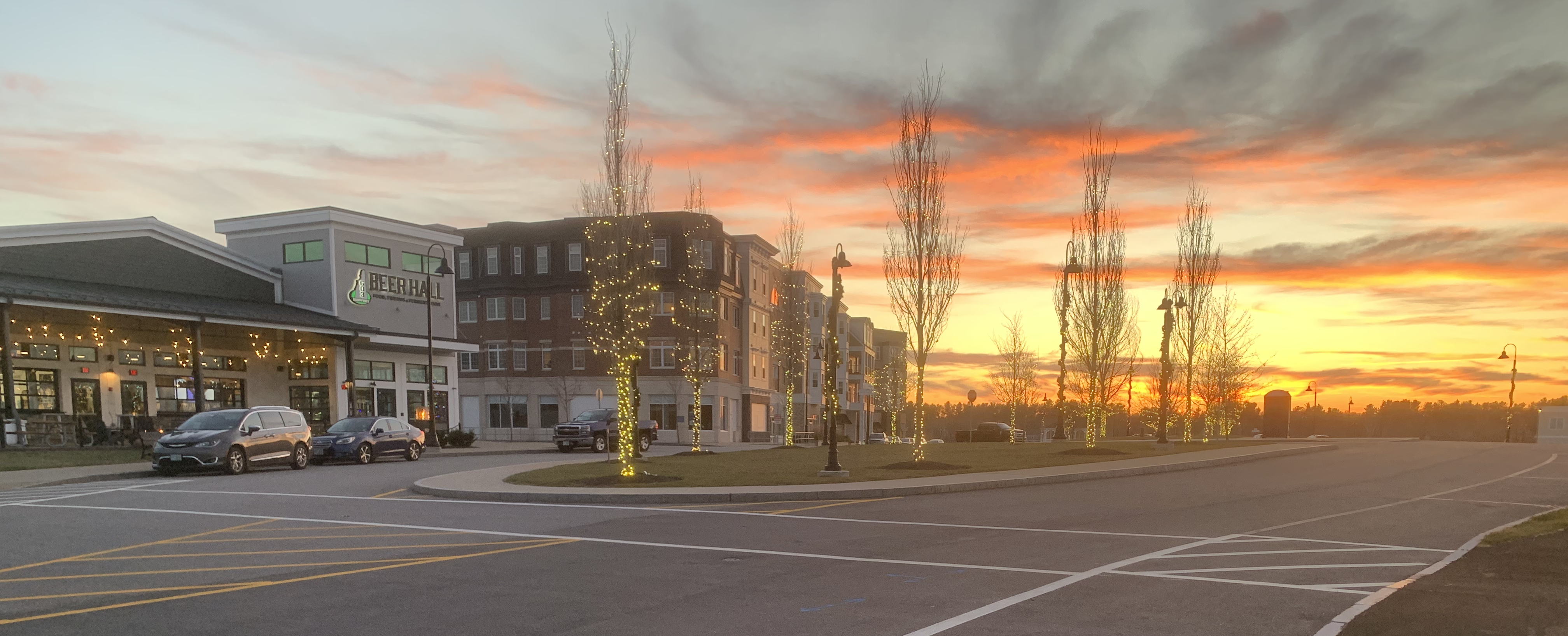 603 is situated in “Woodmont Commons,” in a part of Londonderry that appears to have been laid out just waiting for apartment complexes and commercial buildings to drop from the sky. But not too many have landed yet, so for the time being 603 and one other neighboring building look over cleared fields, awaiting additional future development, and providing terrific sunset views.