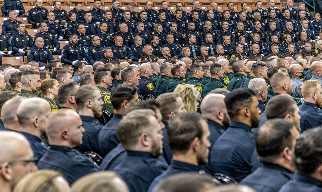 Members of law enforcement from hundreds of departments came to the arena to honor him.