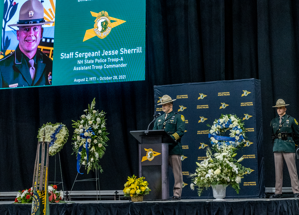 MANCHESTER, NH โThousands of people on Wednesday at the SNHU Arena in Manchester honored State Police Staff Sergeant Jesse E. Sherrill who was killed in the line of duty Oct. 28.