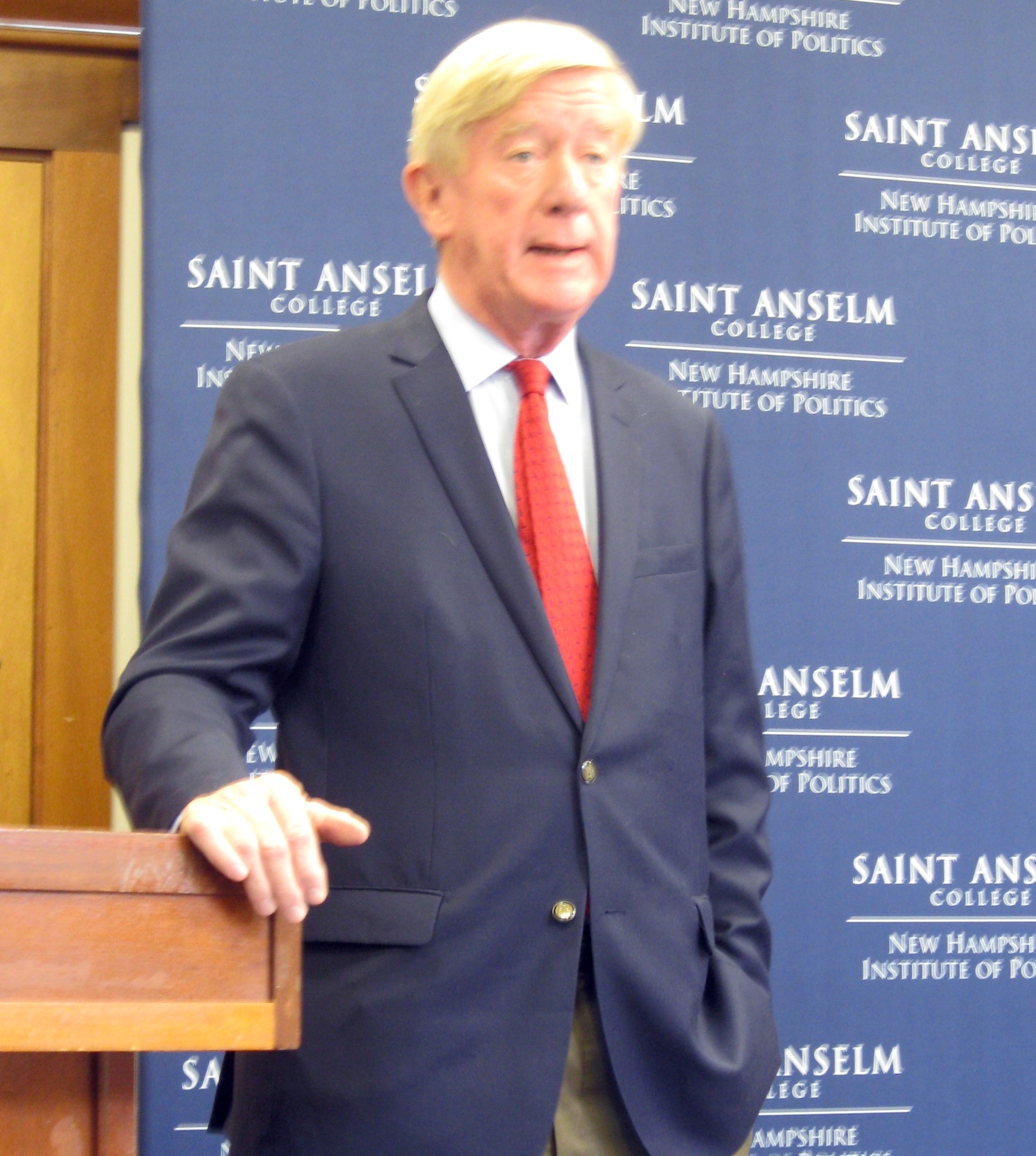 Weld, 74, was governor of Massachusetts from 1991 to 1997. He grew up in Long Island, NY, but said he spent weekends at his family’s summer home in Henniker. He now lives south of Boston and likes that he can campaign all day in New Hampshire and still spend the night in his own bed. In a dark blue blazer, light blue shirt and red tie Monday, Weld looked healthy and energetic, fully comfortable in his role as a lecturer.