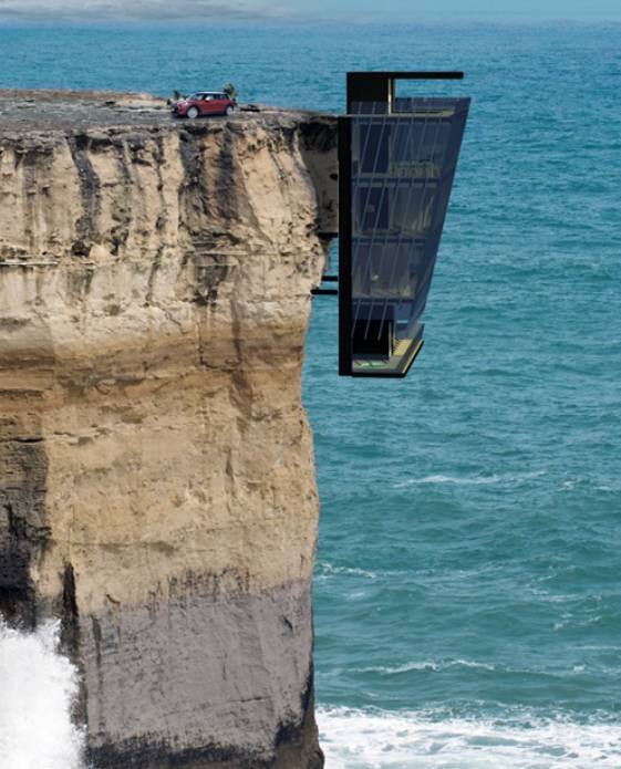 The home pictured above was designed by architects Modscape to be suspended above the ocean in the Australian state of Victoria.