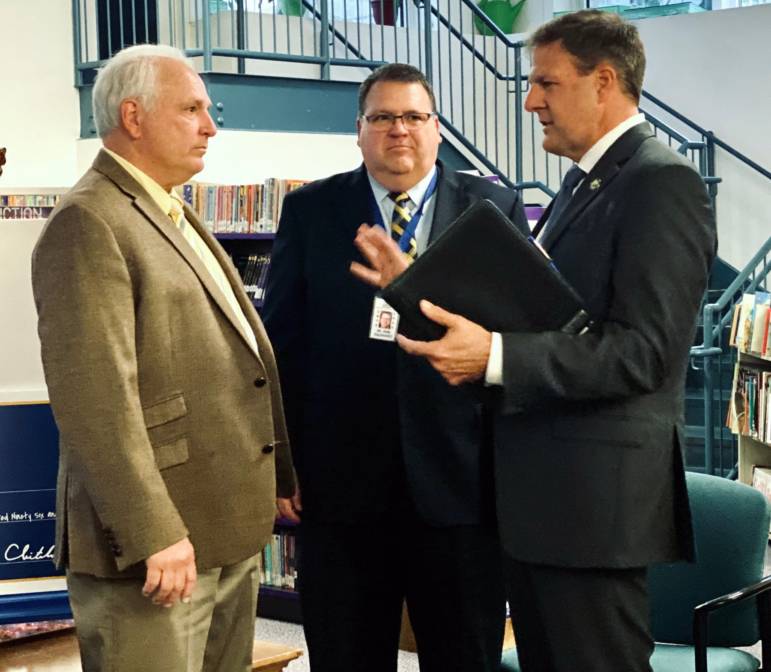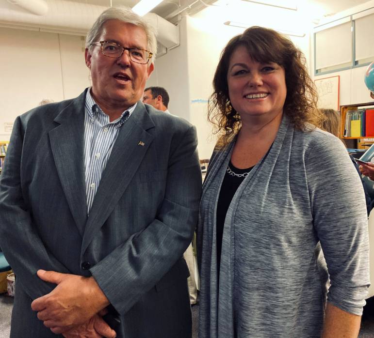 Republican Mayoral candidate Victoria Sullivan, who had taken a fall down her front steps Sunday and limped down a stairwell to reach the schoolโs library where the presentation was made, said she believes the Governor understands where the city has struggled and said the additional funding will go a long way in addressing those issues.