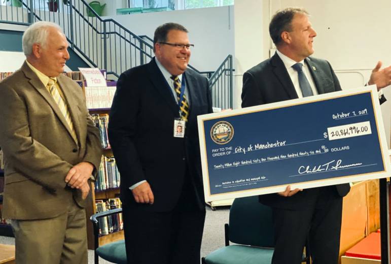 MANCHESTER, NH โ Gov. Chris Sununu presented a ceremonial $20.8 million check to Manchester School District officials, highlighting what he called historic investments in the city.