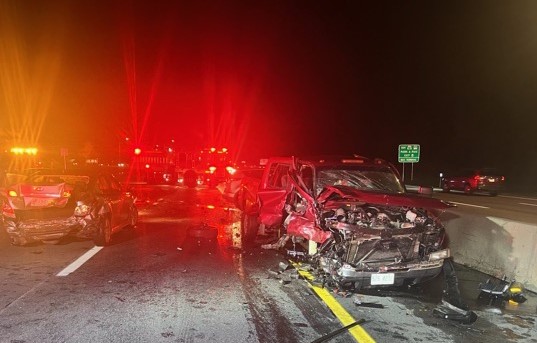 A wrong-way crash on FE Everett Turnpike in Nashua in June 2023 seriously injured the driver, who New Hampshire State Police said was impaired. The state is looking at ways to lower the state’s wrong-way driving crash rate. Photo/New Hampshire State Police