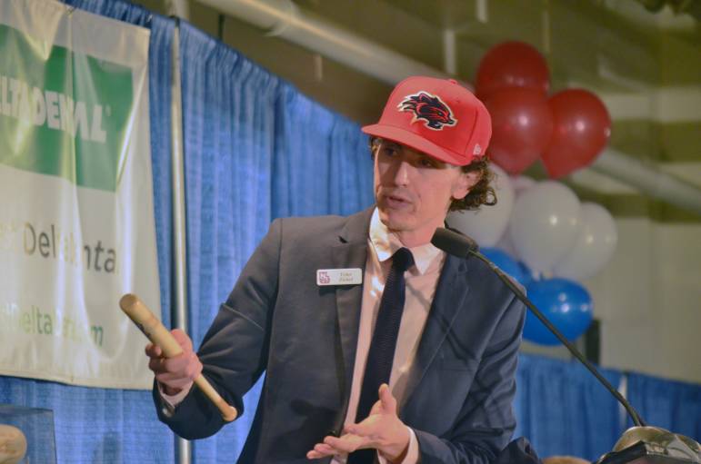 Tyler Zickel introduces baseball dignitaries at the 2018 Granite State Baseball Dinner