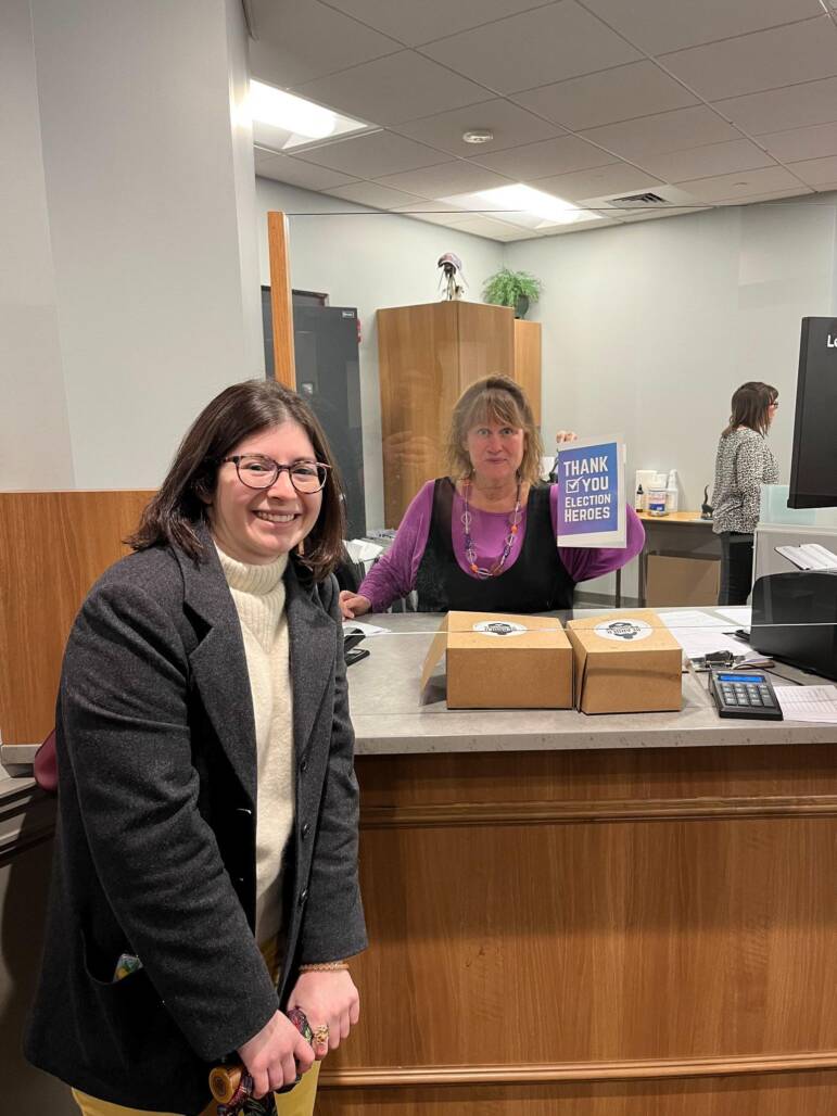 MANCHESTER, N.H. – On Tuesday, members of 603 Forward came to the Manchester City Clerk’s office to give thank you cards and baked goods to election workers.