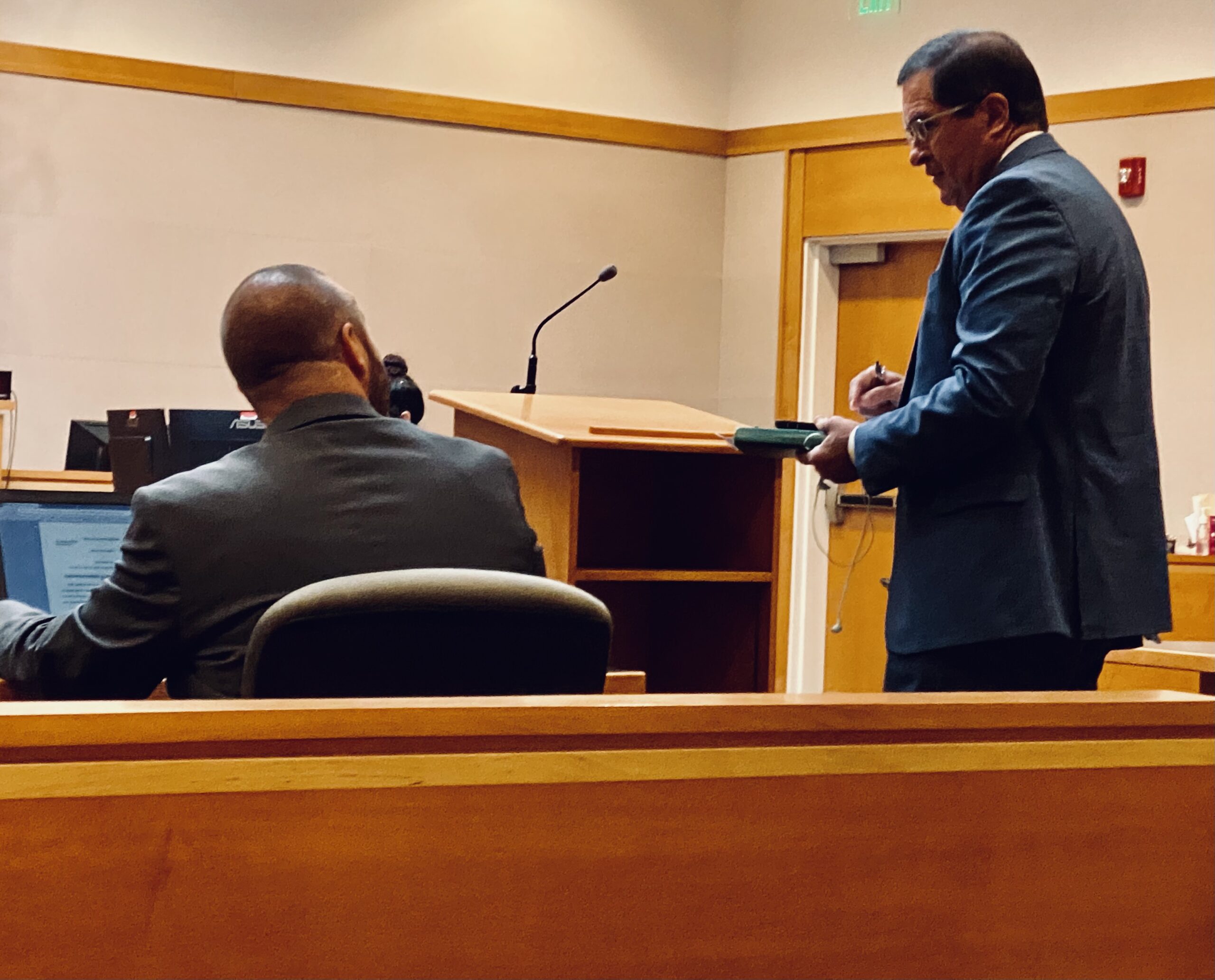 The hearing was to allow the judge to ask about the status of plea negotiations between the parties, and other matters to determine if there are issues the court needs to address before trial.