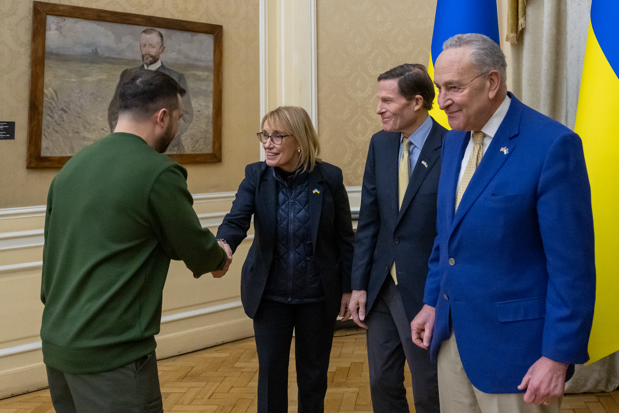 U.S. Sen. Maggie Hassan is greeted by President Volodymyr Zelenskyy