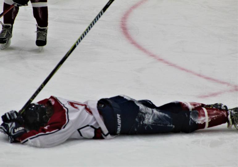 CONCORD, N.H. โ At one point during Saturday night’s Division III hockey championship game at Everett Arena, Hollis Brookline-Derryfield’s Conor Sanborn skated over to the small crowd of Warrior fans and gestured for them to cheer.