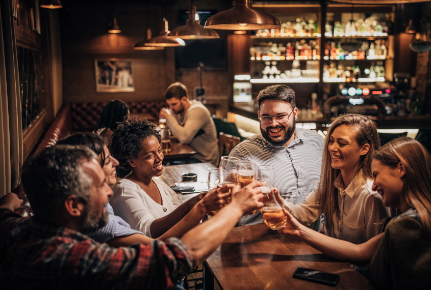 My friend Heathcliff[1] and I are having beers at a table with our comfortable and gregarious friends.