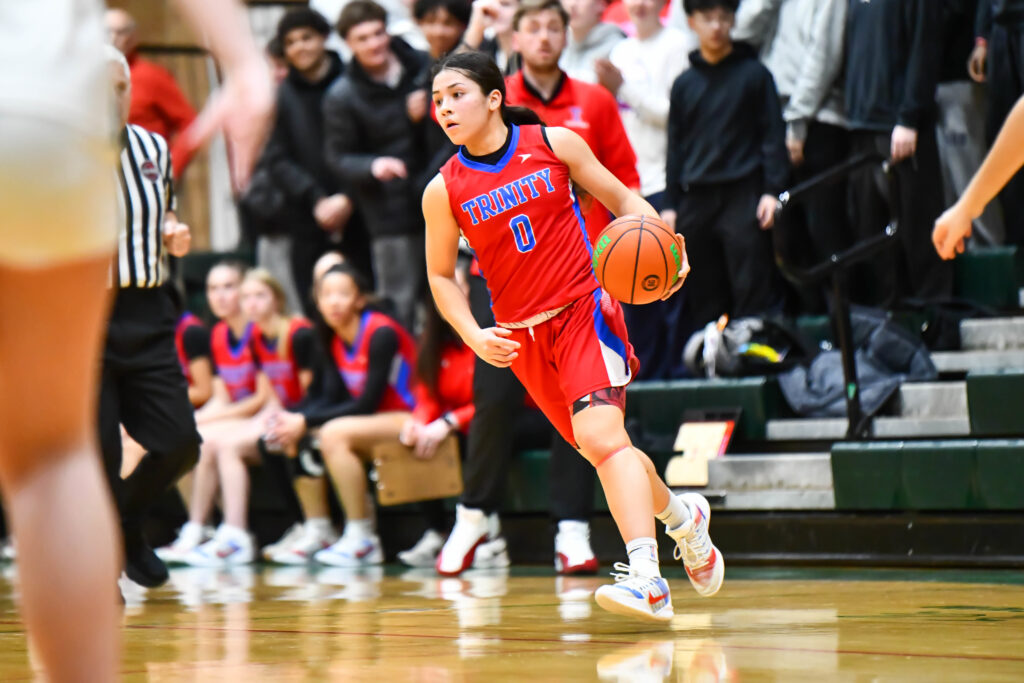 The same night, about 20 miles south, the No. 9 Trinity High School girls battled on the road at No. 8 Bishop Guertin, but were edged, 44-40.