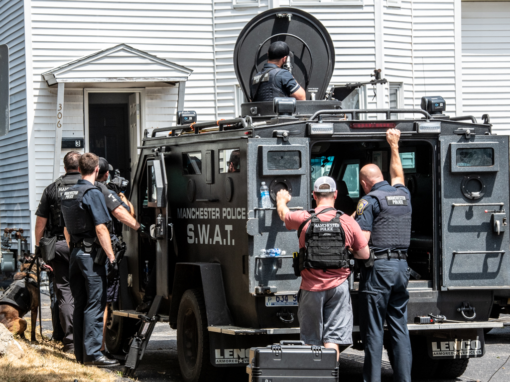 SWAT officers brought additional personnel to the scene as well as Manchester Police negotiators.