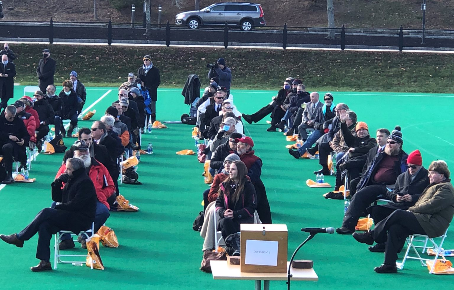 About 80 seats were set apart for GOP House members who did not wear face masks on Organization Day outside at UNH in Durham on Dec. 2, but it was unclear if they were all filled. The House clerk’s office said there is no master list of lawmakers who requested seating in the maskless section.