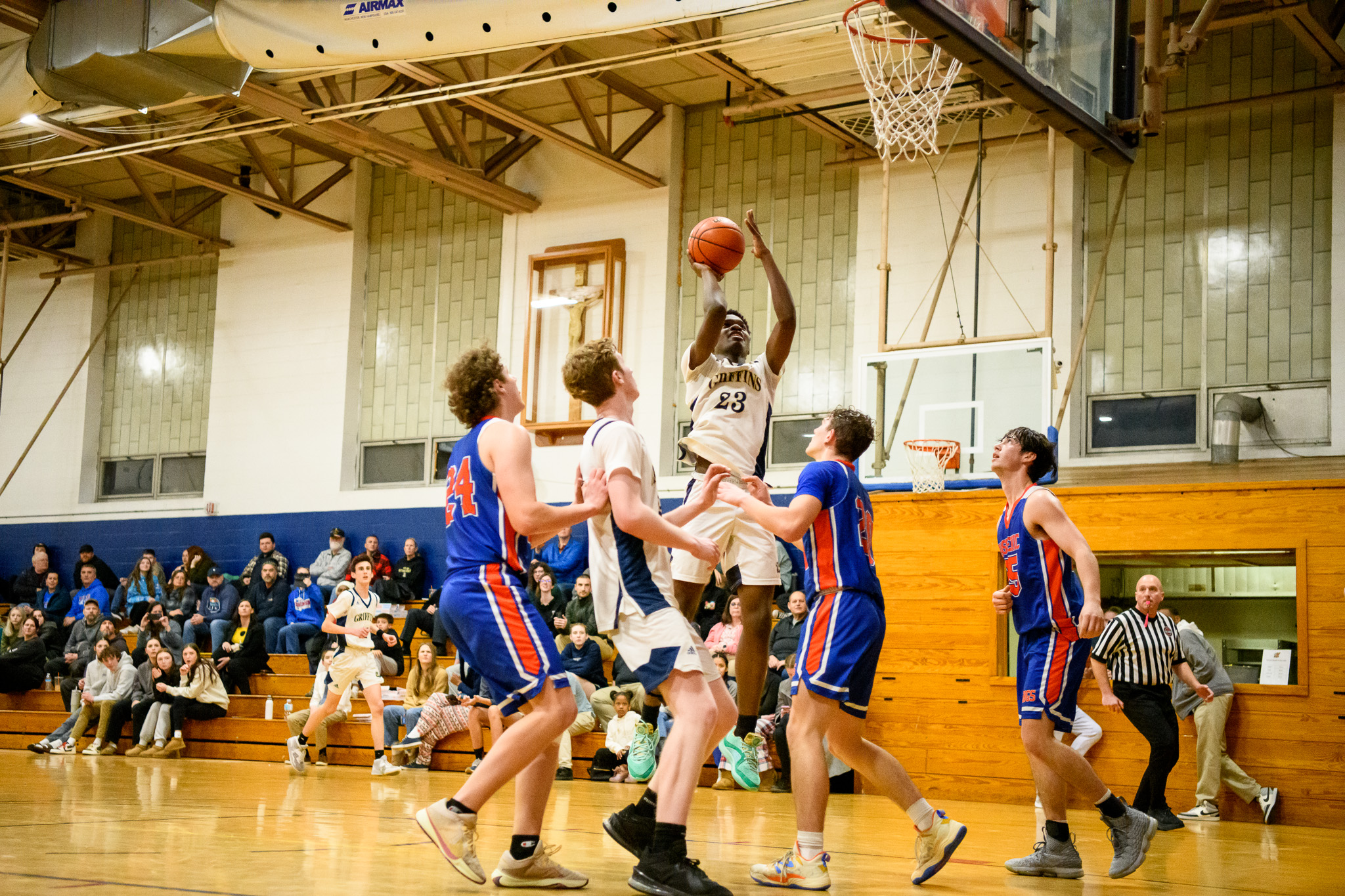 The Griffins outscored the visitors by 10 in the second quarter, to take a 33-20 lead into the locker room, extended their lead to 17 points after three, and then held off a fourth quarter push to secure the 513-point triumph.