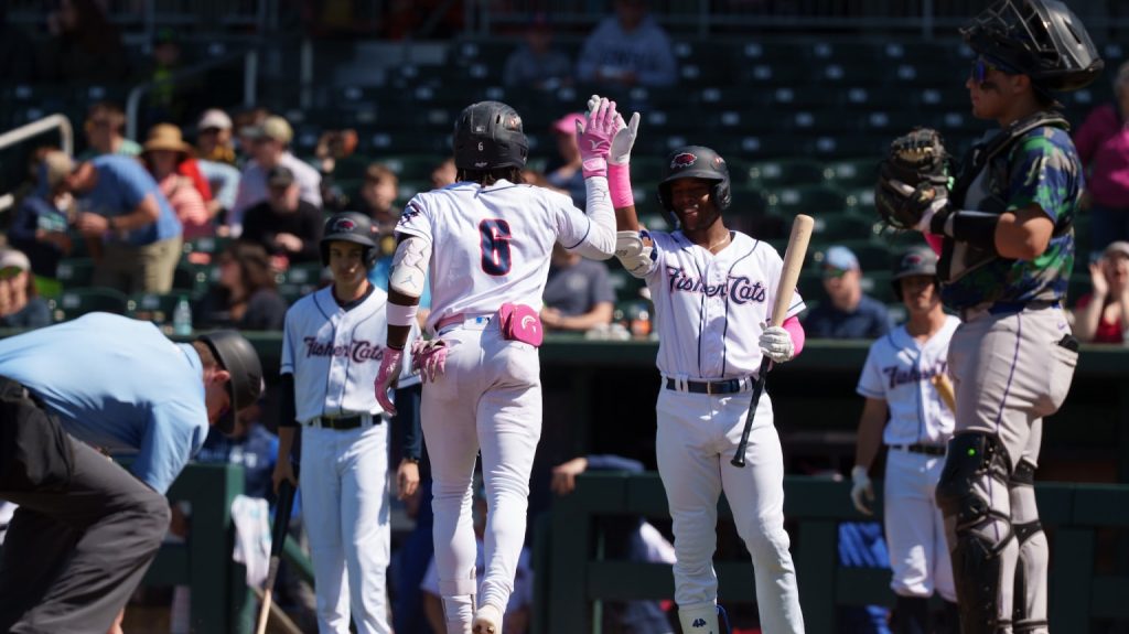 New Hampshire’s offense exploded for five runs with two outs in the bottom of the second inning. After first baseman Peyton Williams and second baseman Eddinson Paulino reached, right fielder Gabriel Martinez tucked a two-RBI double down the left field line to plate both runs and put the Fisher Cats in front, 2-1. New Hampshire catcher Jacob Sharp plated Martinez from second before left fielder Yohendrick Piñango laced his sixth homer of the season which gave the Cats a 5-1 lead after two innings.