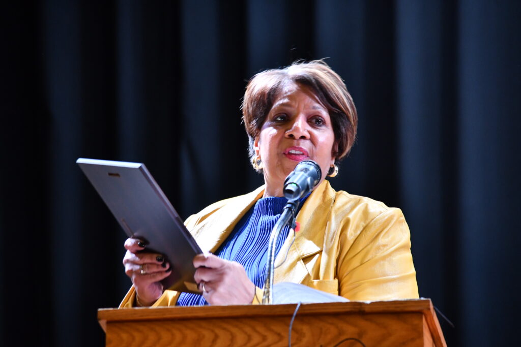 Former State Senator Melanie Levesque (D-Brookline) is honored during the 44th MLK Jr. Community Celebration in Manchester. Photo/Andrew Sylvia