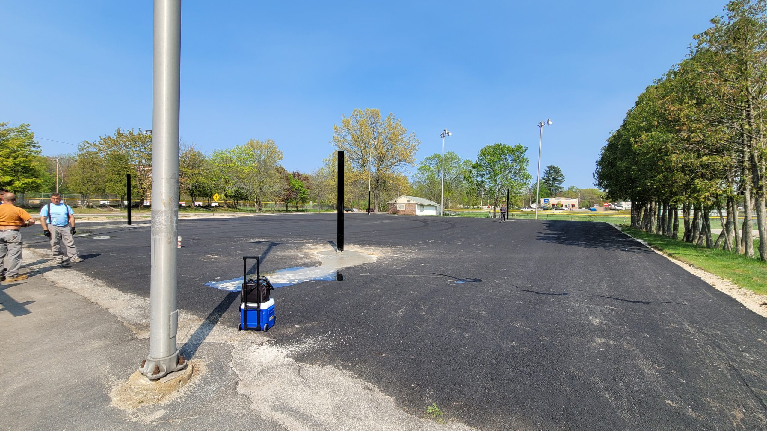 Gomez said the work at Wolfe Park is on schedule, with new asphalt laid down, they’re getting ready to install the new hoops, the court top coat and for the painting.