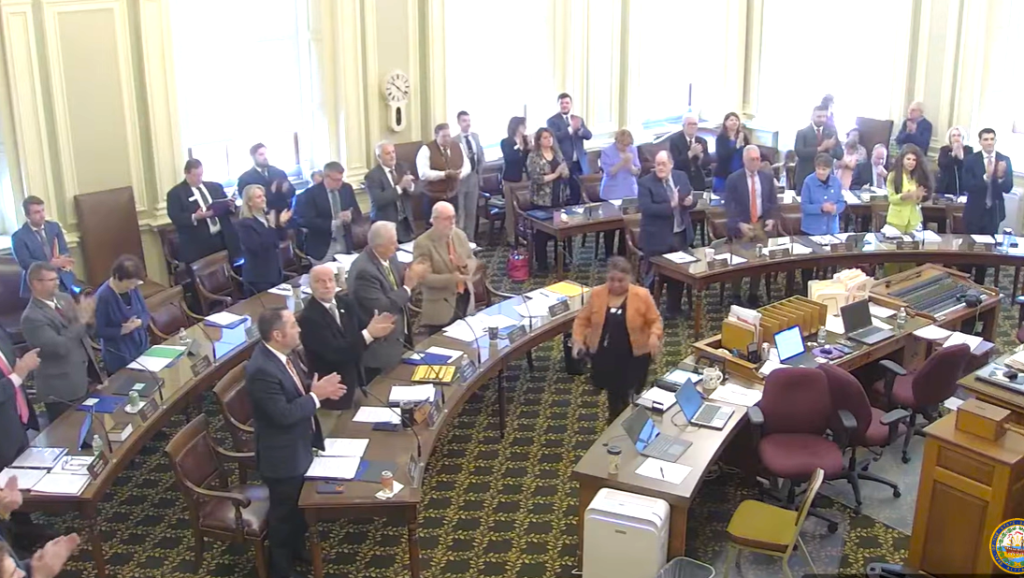 The New Hampshire Senate in session Thursday. The Senate voted to retain the Housing Champions program at the session, by voting that its repeal was inexpedient to legislate. Photo/New Hampshire Senate YouTube screen image