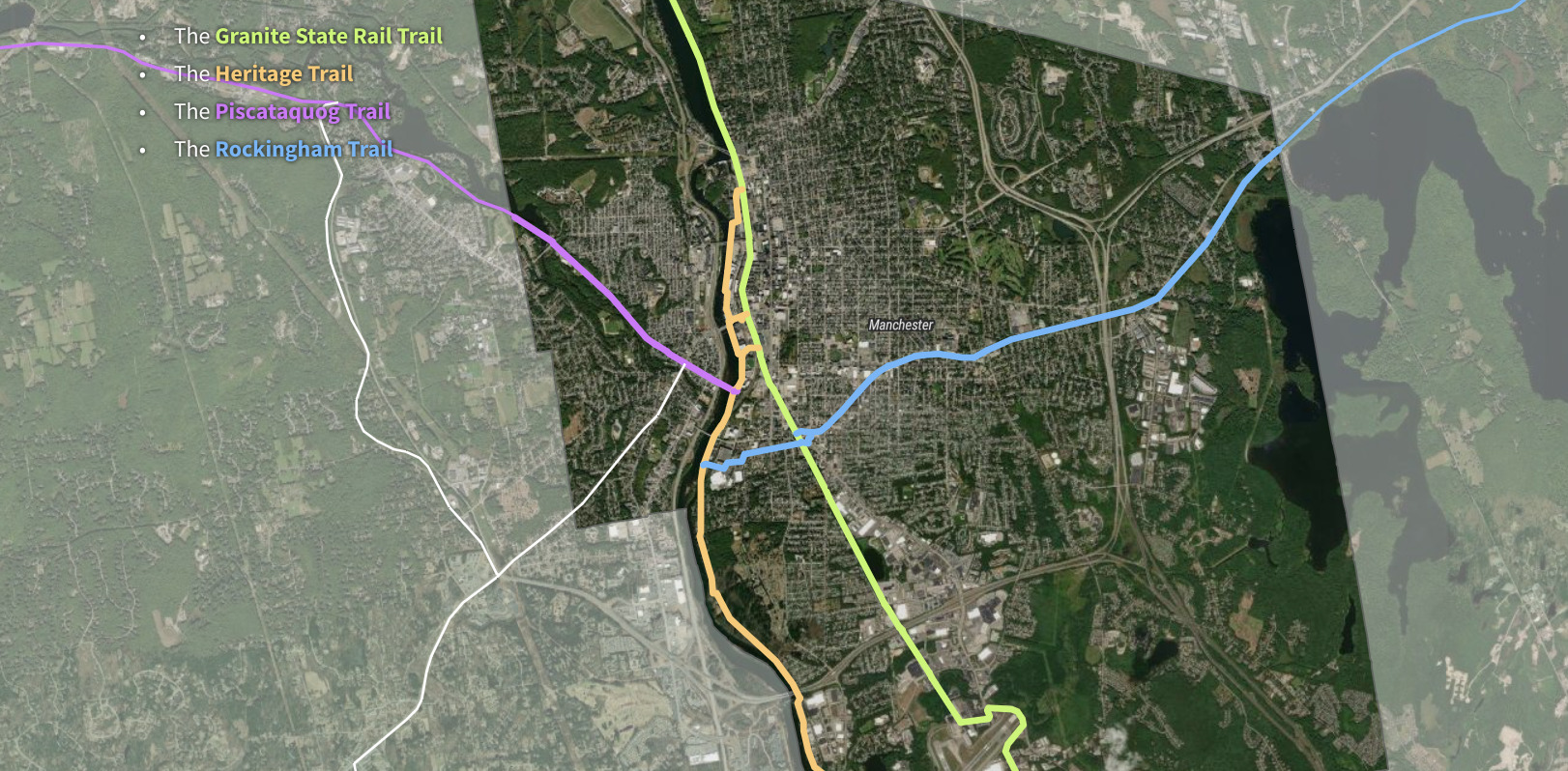 Currently, the Granite State Rail Trail, an almost contiguous 125-mile rail-trail that runs diagonally across New Hampshire from the Northwest corner to Salem with a 21-mile gap that excludes Manchester residents from enjoying the health and social benefits and increased economic activity that a rail trail will bring to the community. This 21-miles of little-used rail line can be converted to an active transportation corridor, a shared-use trail used for jogging, walking, and biking.