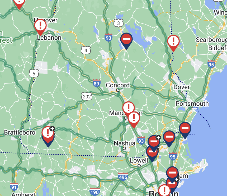 MANCHESTER, NH – A total of 15 vehicles were involved in three separate accidents on I-93 Monday morning that resulted in three people being transported with injuries, one considered to be life-threatening, and including a firefighter, who suffered a hip injury when struck by a pick-up truck while assisting at the scene.