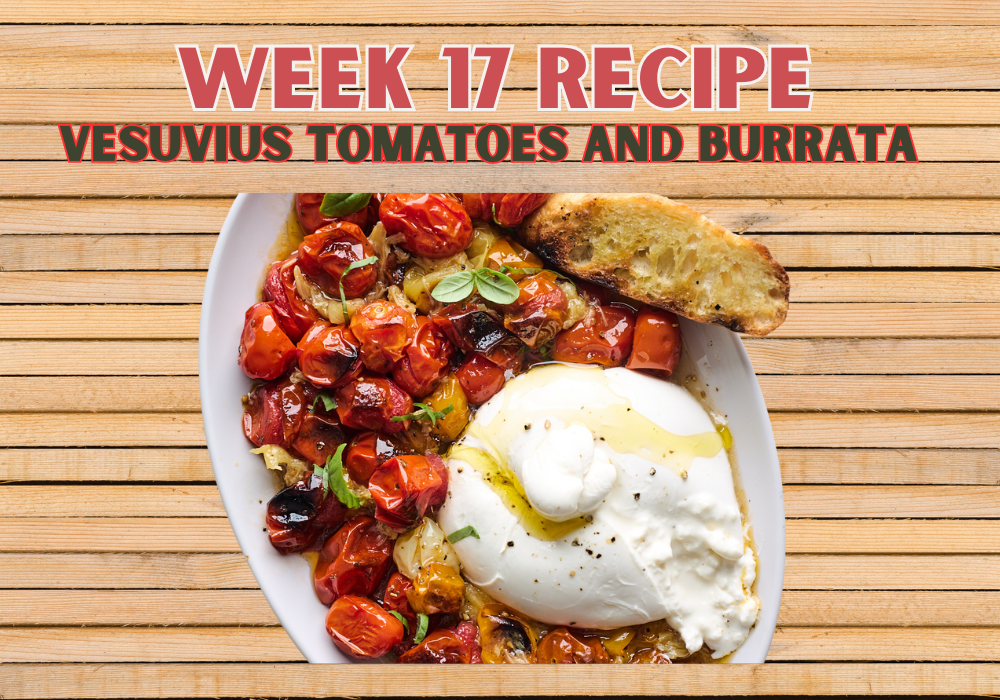 Service: Drizzle the dressing on a plate around the Burrata, then arrange the tomatoes. Toast the bread and place it in another bowl. Step back and watch your guests attack the plate.