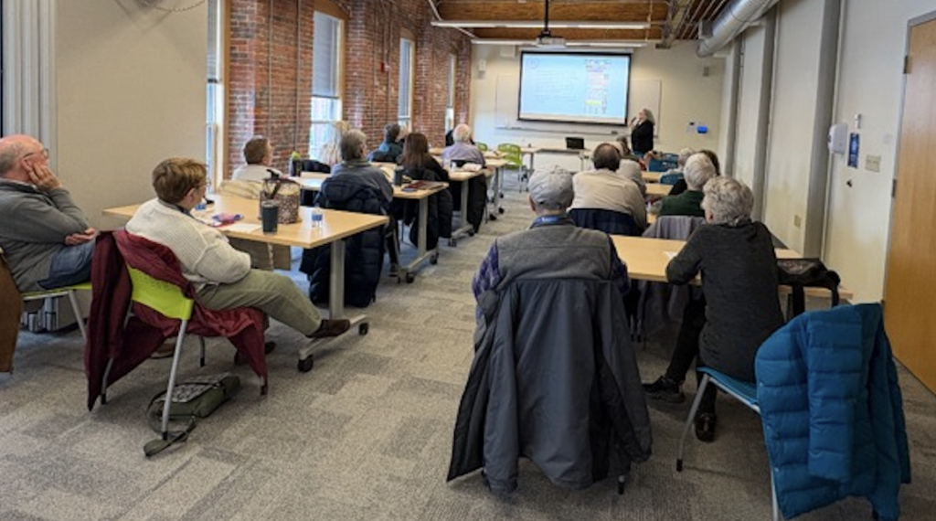 MANCHESTER, NH – Carol Robidoux, New Hampshire Press Association’s 2020 Journalist of the Year, addressed a group of 25 UNH OLLI life-long learning members on Friday afternoon at UNH’s Manchester millyard campus.