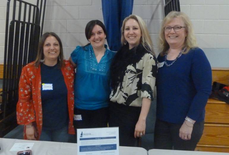 MANCHESTER, NH – Members of the NH Human Trafficking Collaborative Task Force set up informational tables just prior to the Interfaith Women of NH Event. Pictured above, Jasmine Grace, Keynote Speaker; Rebecca Ayling, NH Human Trafficking Collaborative TaskForce, Project Director, and Manager of the Human Trafficking Response Program at Waypoint, Manchester; Bethany Cottrell, founder of Brigid’s House of Hope, the first long term care safe house for victims of human trafficking in NH; and Donna Plourde, Executive Director of Real Life Giving and “revive.” a women’s care and support center in Manchester.