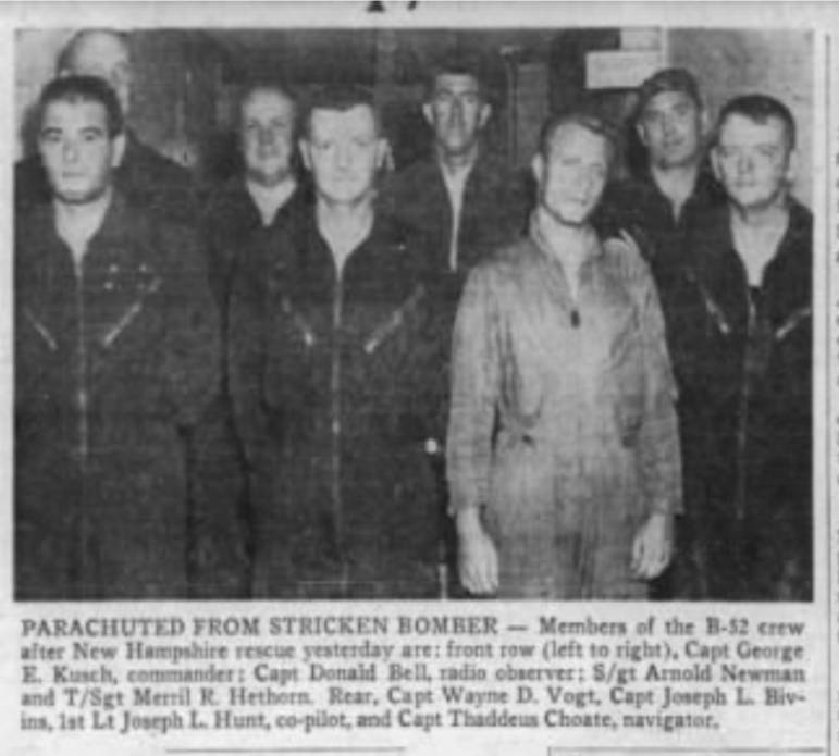 The crew’s survival, however, was preceded by real drama high over the Granite State: the B-52C, on a training mission out of Westover Air Force Base in Chicopee, Mass., began shaking and breaking up at 34,000 feet over New Hampshire.