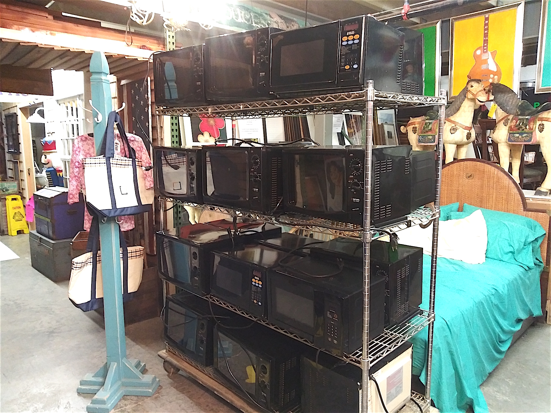 Some furnishings are clearly recognizable time-warp pieces, their stylized design capturing their era. Chairs, ironing boards, refrigerators microwaves, mirrors, vanities, desks, fixtures – basically, any and all items you would find within a hotel can be found.