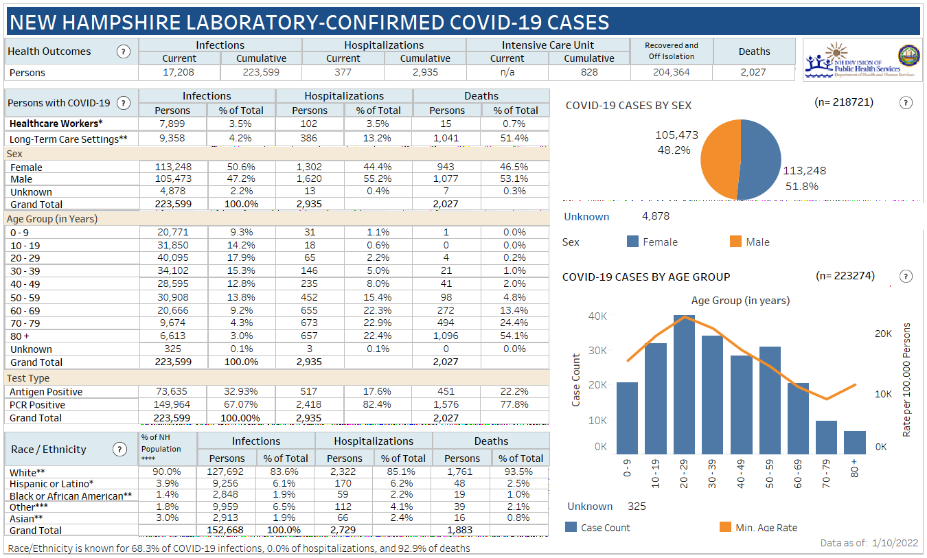 New Hampshire 2019 Novel Coronavirus (COVID-19) Summary Report (updated January 10, 2022, 9 a.m.)
