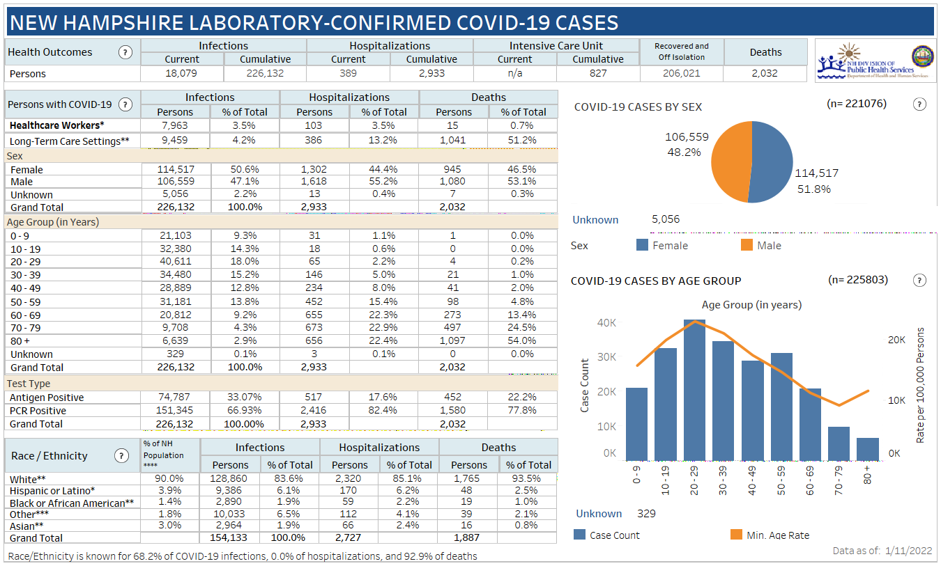 New Hampshire 2019 Novel Coronavirus (COVID-19) Summary Report (updated January 11, 2022, 9 a.m.)
