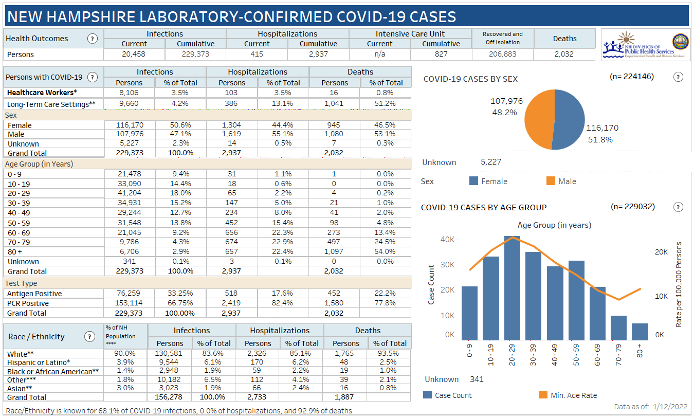 New Hampshire 2019 Novel Coronavirus (COVID-19) Summary Report (updated January 12, 2022, 9 a.m.)