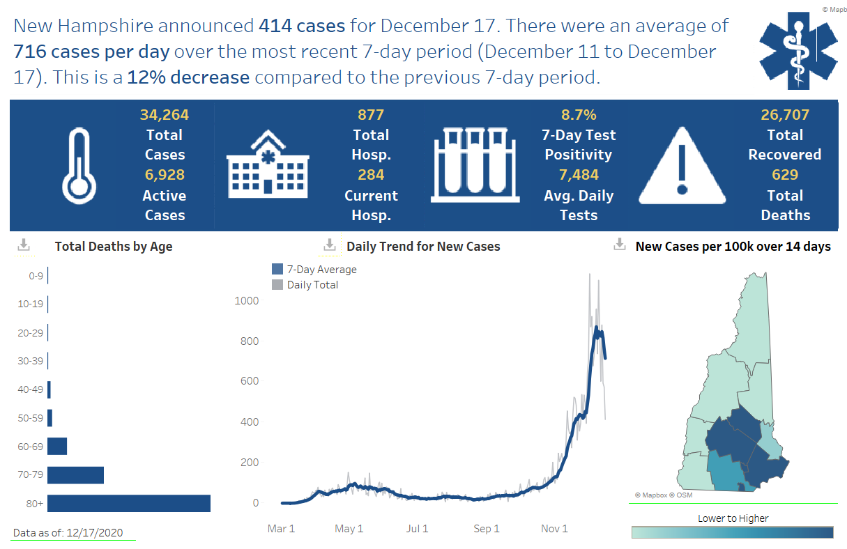 New Hampshire 2019 Novel Coronavirus (COVID-19) Summary Report (updated January 14, 2021, 9 a.m.)