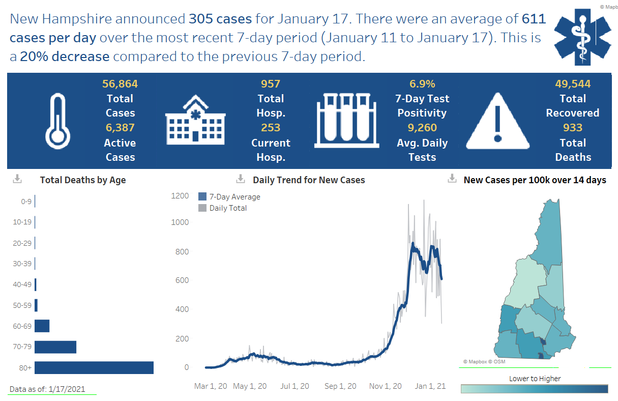 ย New Hampshire 2019 Novel Coronavirus (COVID-19) Summary Report (updated January 17, 2021, 9 a.m.)