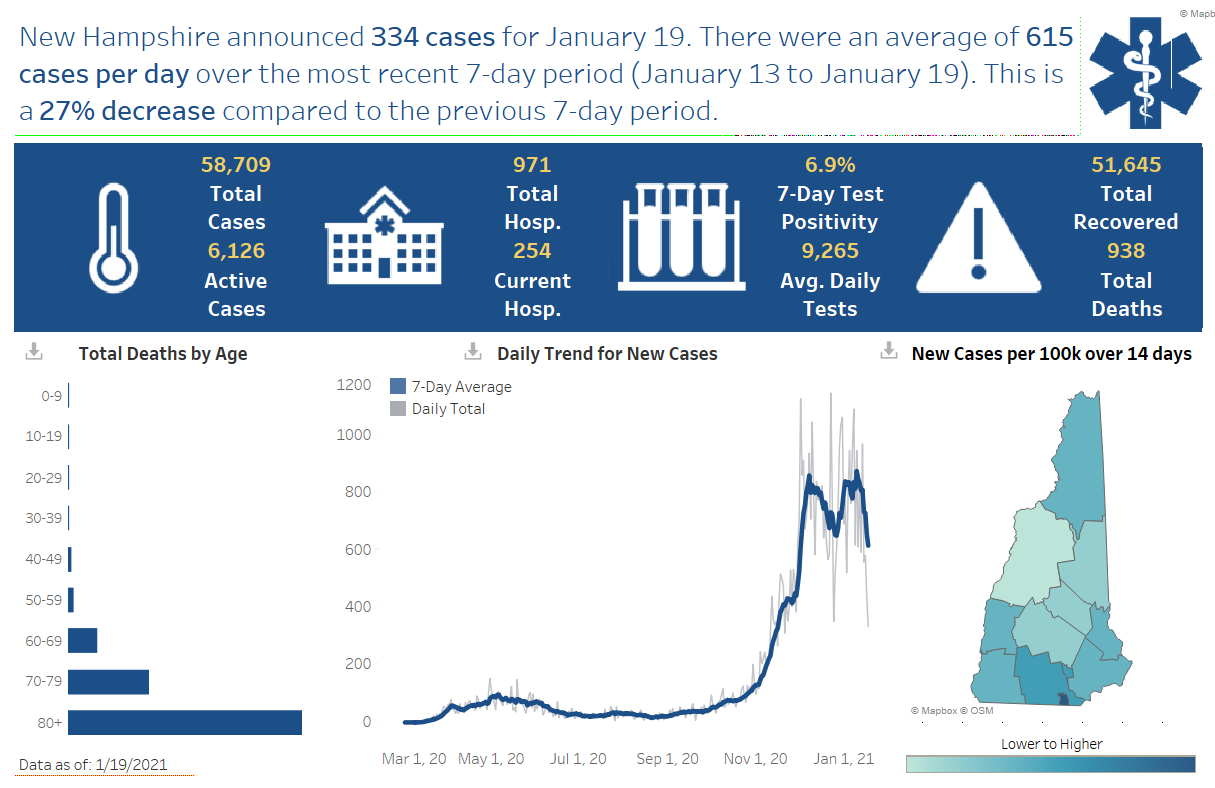 ย New Hampshire 2019 Novel Coronavirus (COVID-19) Summary Report (updated January 20, 2021, 9 a.m.)