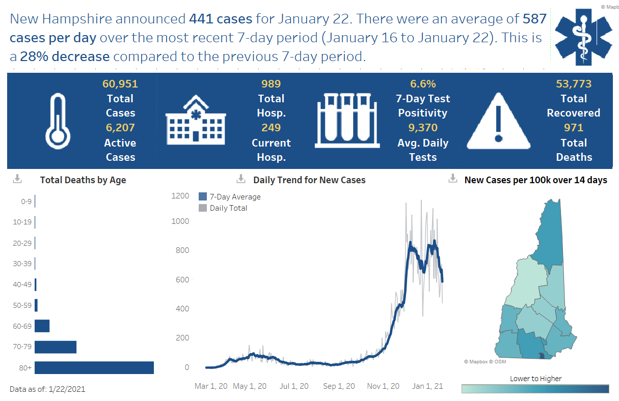 New Hampshire 2019 Novel Coronavirus (COVID-19) Summary Report (updated January 22, 2021, 9 a.m.)