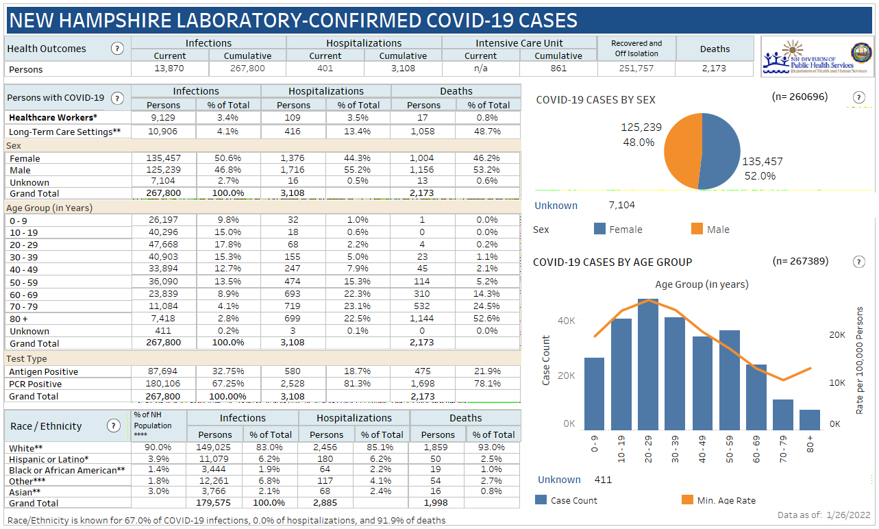 New Hampshire 2019 Novel Coronavirus (COVID-19) Summary Report (updated January 26, 2022, 9 a.m.)