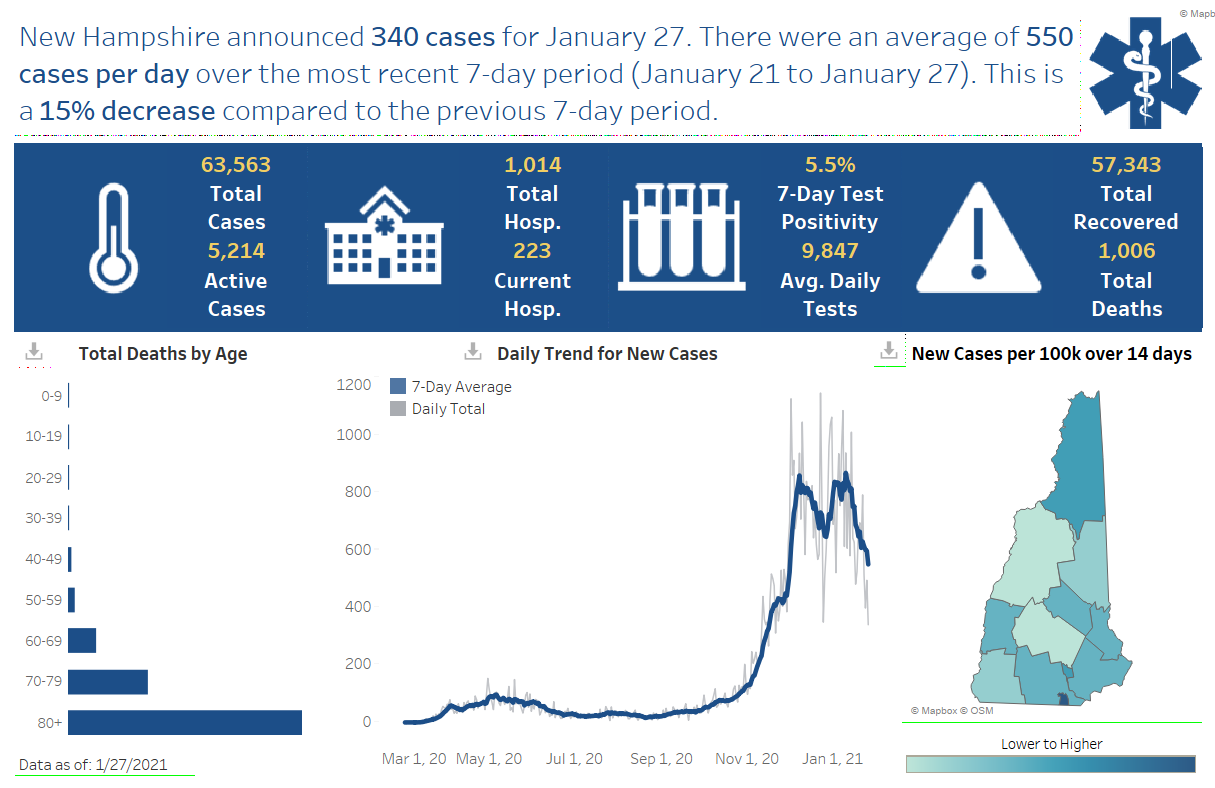 ย New Hampshire 2019 Novel Coronavirus (COVID-19) Summary Report (updated January 27, 2021, 9 a.m.)