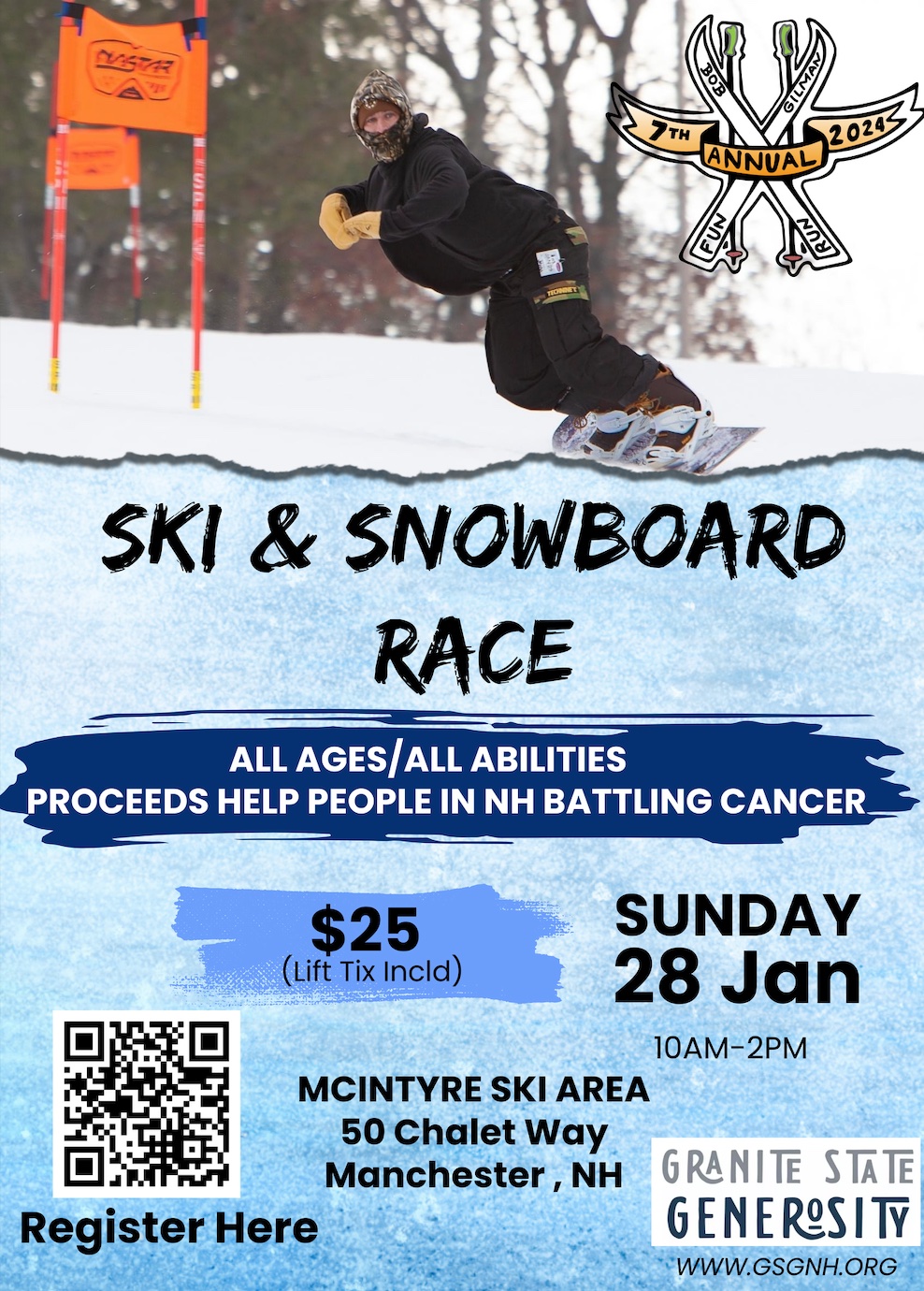 MANCHESTER, NH – Granite State Generosity is gearing up for ski and snowboard season – because it means the Bob Gilman Fun Run is fast approaching. This event is for all ages and abilities and will be held at Manchester’s Winter Playground – McIntyre Ski Area, Sunday, January 28, beginning at 10 a.m. and ending at 1 p.m. with an awards ceremony at 2 p.m.
