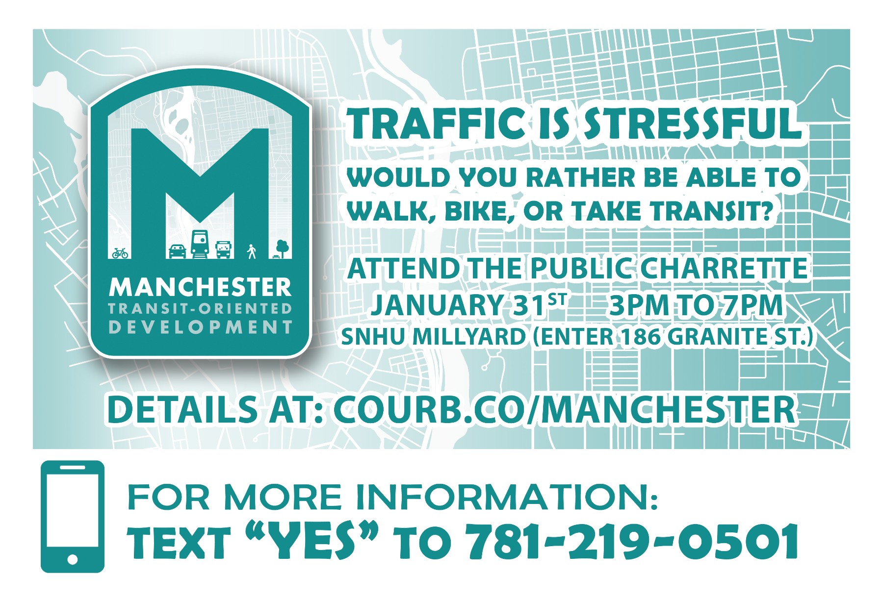 Join the Transit-Oriented Development (TOD) project design team for an evening of envisioning new apartments, condos, offices, shops, parks, and plazas all within a 5- to 10-minute walk of a new bus hub and future rail station in the South End of Downtown Manchester. This major public meeting is your opportunity to help set the direction for the future of the area as it moves from post-industrial into a mobility-enabled future. Canโt stay the whole time? No problem, drop-ins and partial attendance welcome!Tran