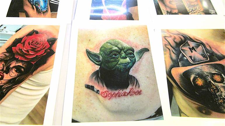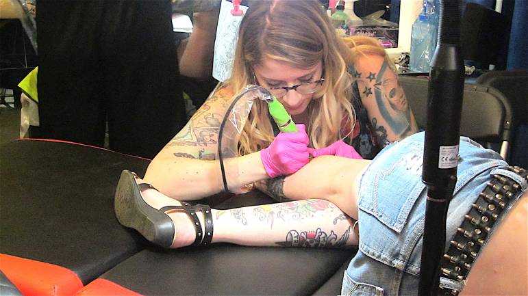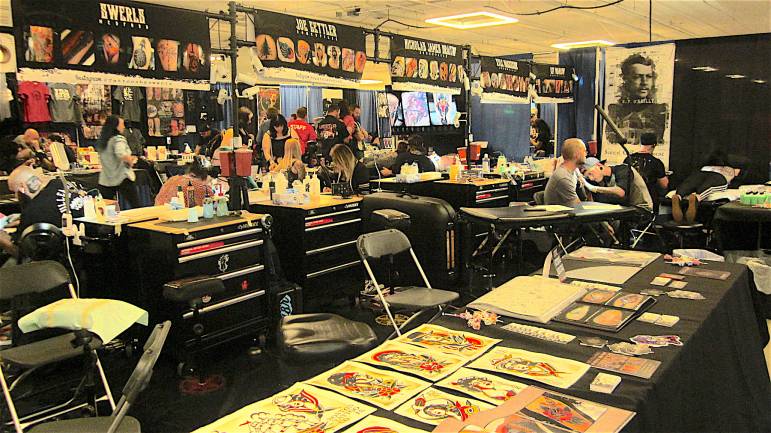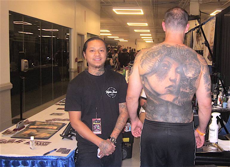 The chatter and buzz of tattoo machines rises as you approach the entrance of expo. A mystical undertone wafts through the room as tattoo fans and body piercing aficionados gather in celebration of their art. Patrons endure hours of pain, unapologetically inscribing their personalized expression. The stereotypical thinking of bikers and sailors as the only demographic vested in body art are long past, as participants of varied backgrounds proudly use their physique as their life’s canvas, reflecting joy and pain, interweaving imagery created by artists perfected in their craft, ranging from flash to realism.